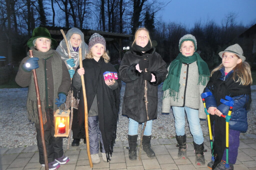 Unsere Klöpfelkinder bedankten sich herzlich für alle Geld- und Sachspenden mit dem Ausspruch „Mia kennan ned do bleim, mia miaßn scho geh, für des wos ma kriagt ham bedank‘ ma uns schee!“, bevor sie zum nächsten Haus weiterzogen.