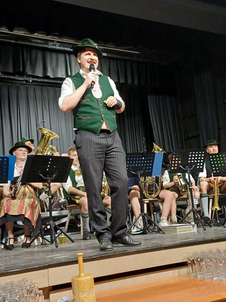 Die Jugendblaskapelle Stephanskirchen unter der Leitung von Simon Ladner begrüßte das Publikum mit Polka und Marschmusik. Interessant wurde es schließlich für 4 junge Musikanten, die als Neulinge ihren ersten Auftritt hatten, und dies gleich vor einem so großen Publikum. Rosalie (Klarinette), Maxi (Trompete), Quirin (Trompete) und Johannes (Tenorhorn) bestanden ihre Premiere mit Bravour.